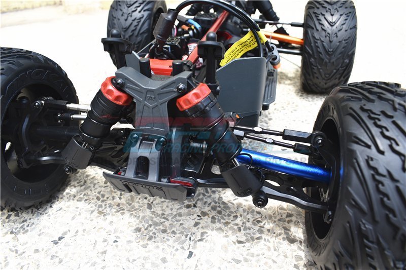 The GPM MAKS148F/RSA front and rear adjustable CVD drive shafts are engineered to provide a robust drivetrain upgrade for the ARRMA KRATON 4X4 4S BLX. Using hardened steel components and aluminium alloy elements, the assembly aims to deliver improved torsional rigidity and dependable power transfer without excessive mass. The CVD swing joint replaces the conventional cross head to reduce driveline lash and improve angular consistency during suspension movement. The adjustable length feature permits precise alignment of suspension geometry, enhancing wheel control and reducing premature wear under heavy use.
