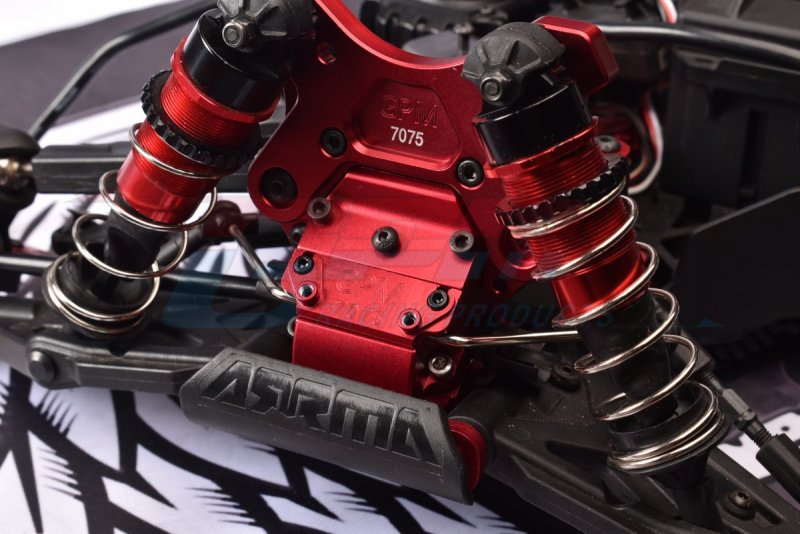 The GPM MAK012N is manufactured from 7075-T6 aluminium to reinforce differential mounts, damper pick ups and knuckle supports on ARRMA KRATON 6S models. The design reduces mating clearances to limit steering backlash and accepts larger inner bearings to improve long term durability under high loads.