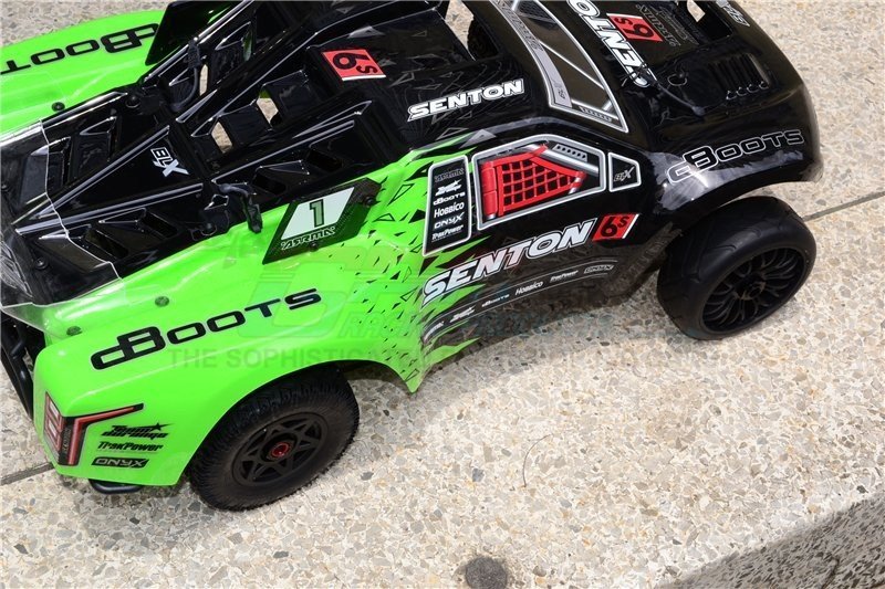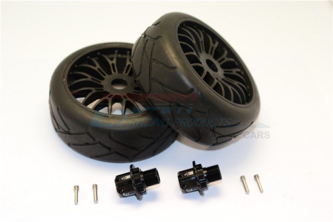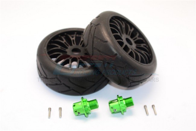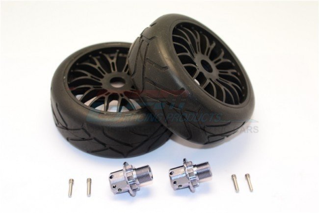 For the ARRMA SENTON 6S BLX, the GPM ARR88910/2 kit supplies aluminium 13mm hex adapters paired with rubber radial tyres on plastic wheels to deliver improved stability and consistent steering feedback. These parts are intended as a durable upgrade to improve tyre contact and handling on cement, asphalt and compacted tracks.