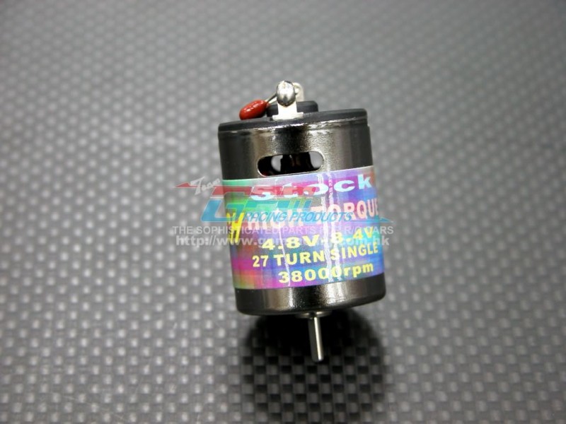 The GPM MOT0427 Roadtech High Torque Motor is specified for the Associated RC 18T with a 27 turn winding and compatibility across 4.8v to 8.4v batteries. Engineered for consistent torque response and straightforward installation, this unit serves as a direct stock replacement or a durable upgrade choice for hobbyists focused on dependable drive characteristics.