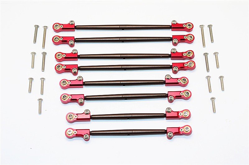 The GPM SCX2049A set supplies front and rear spring steel rod links matched to aluminium ends to deliver predictable movement and reduced flex on the Axial SCX10 II. These links are intended as a durable upgrade to maintain alignment and control across technical sections.