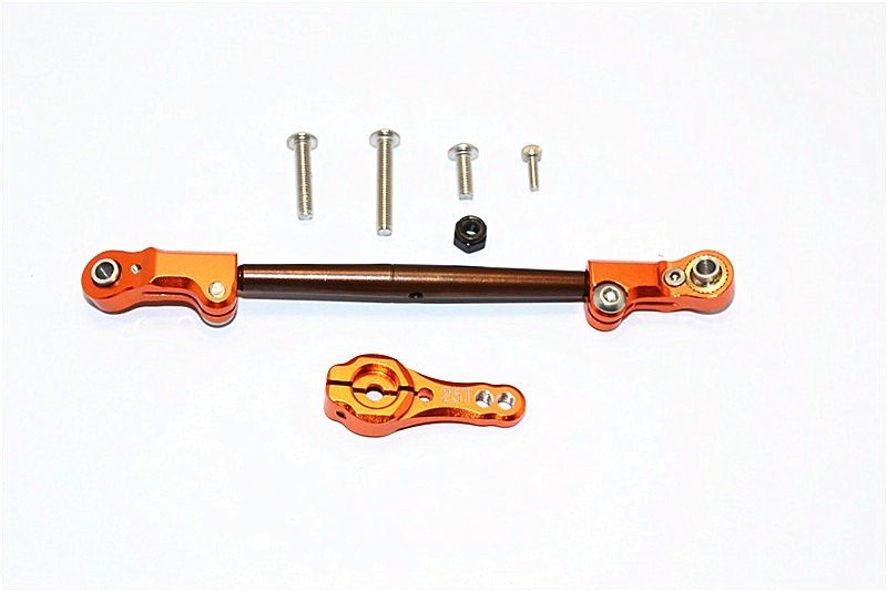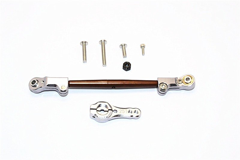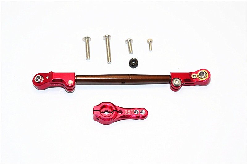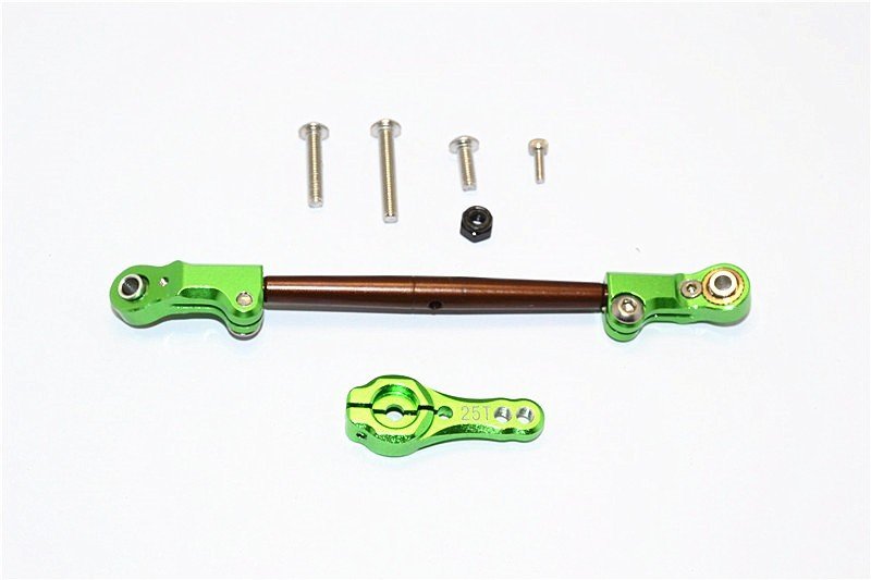 This adjustable spring steel servo rod by GPM provides a serviceable steering upgrade for the Axial SCX-10 II platform. It includes aluminium ball ends and a 25T servo horn compatible with standard 25T servos, giving tuners a reliable way to refine ackermann and steering centroid while improving linkage stiffness and repeatability.