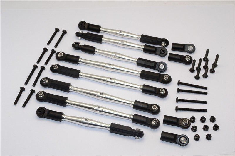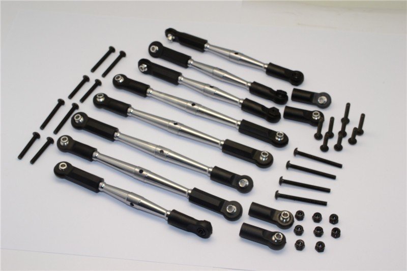 These rods are supplied as an 8 piece set and install easily with common RC tools. They are specified for the Gmade R1 Rock Buggy chassis and should integrate cleanly with stock steering mounts when set within the 300mm-323mm range.