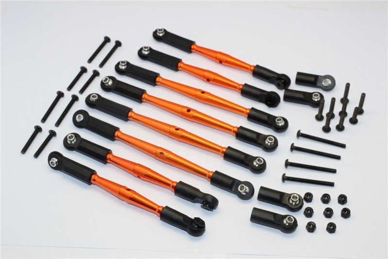 The GPM GM1605 tie rod set provides a rugged 5mm aluminum link with an anti-thread design to minimise loosening during demanding use. These adjustable rods cover a 300mm-323mm wheelbase and are intended to stabilise steering geometry under load.