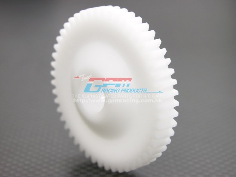 The GPM Delrin main gear is specified for HPI Savage 21 applications where material durability and consistent gear mesh are priorities. The 49-tooth geometry is chosen to promote uniform tooth contact and to minimise frictional losses in the drivetrain while preserving component life under repeated loading.