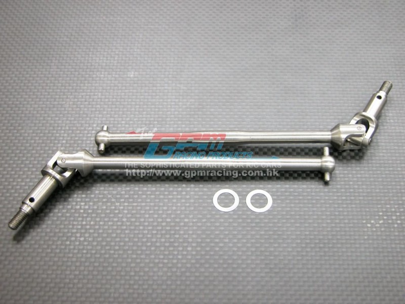 The GPM TSAV12100 front and rear universal swing shafts are engineered to offer improved fatigue resistance and reduced mass compared with stock steel components. Titanium construction provides a favourable strength-to-weight ratio, supporting repeatable suspension kinematics under load. The kit includes washers to ensure axial retention and minimise slop in the mounting interface, making it a robust option for intensive running and performance tuning.