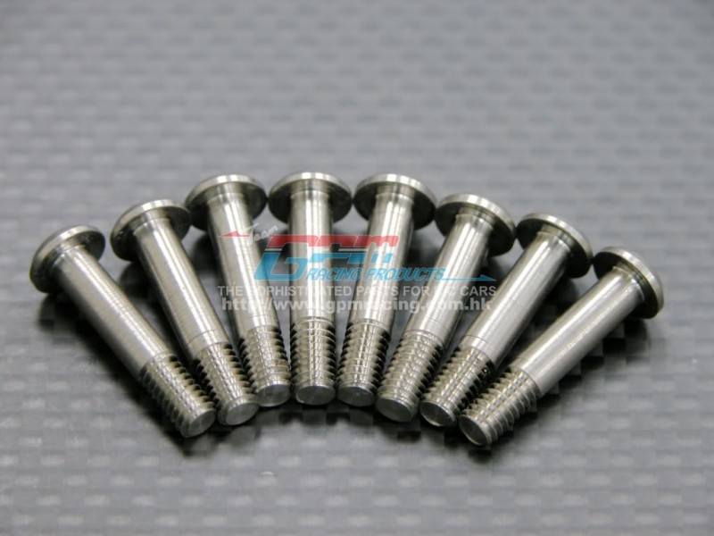 These GPM titanium king pin screws are produced to give HPI Savage, Savage X, and Savage Fluorescent models a more robust and precise king pin assembly. The parts are suitable for hobbyists seeking durable upgrade hardware that maintains correct pivot alignment under load.