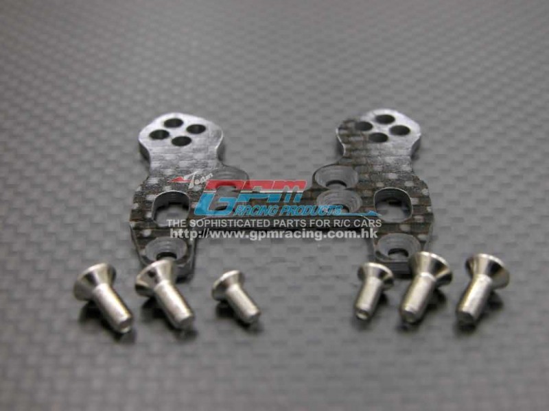 This graphite front damper plate for the Kyosho Mini Inferno and Mini Inferno 09 is produced by GPM to provide a precise, durable replacement for the stock plate. The component is intended to increase front-end stiffness and improve consistency in steering feedback, while the supplied screws permit a clean, repeatable installation for hobbyists focusing on reliable upgrade performance.