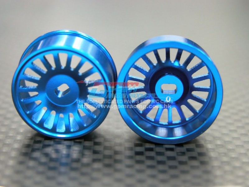These GPM alloy sinkage rims are specified for front and rear Mini-z AWD fitment and are dimensioned to the original profile: 18p, 0mm offset and 8.5mm rim width. The geometry supports predictable tyre placement and consistent handling characteristics for tuned Mini-z setups.