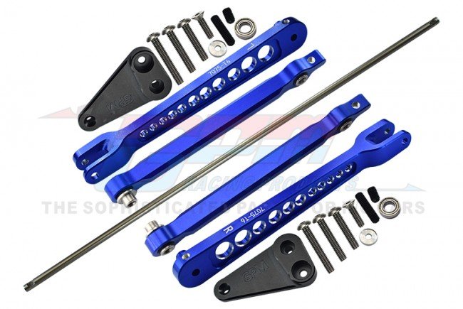 The GPM HR312 rear anti swing rod and stabilizer bar set is developed for the TEAM LOSI HAMMER REY U4 ROCK RACER as a durable handling upgrade. Manufactured from 7075-T6 aluminium, the components are intended to reduce rear end tilt and deliver a firmer rear tracking response under load.