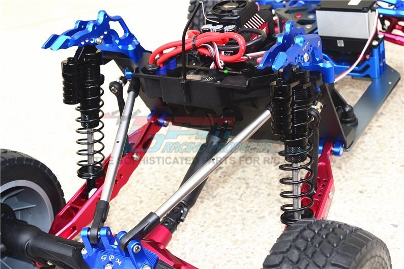 The GPM Aluminum Rear L-shape Shocks are CNC oriented components engineered for the Team Losi Super Baja, focusing on improved stiffness, oil containment and repeatable damping. Manufactured from anodised aluminium, these assemblies aim to raise durability and provide a stable shock platform for tuning.