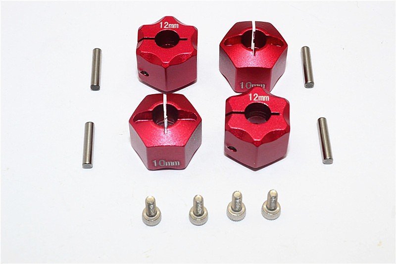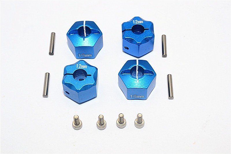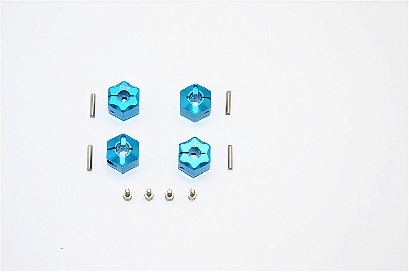 This GPM aluminum wheel hex set is produced for THUNDER TIGER KAISER XS applications where improved retention and wear resistance are desired. The kit contains four 12mm x 10mm hex components that provide a secure wheel interface and consistent alignment. For installation, use the supplied fasteners to achieve firm wheel retention without altering hub geometry.