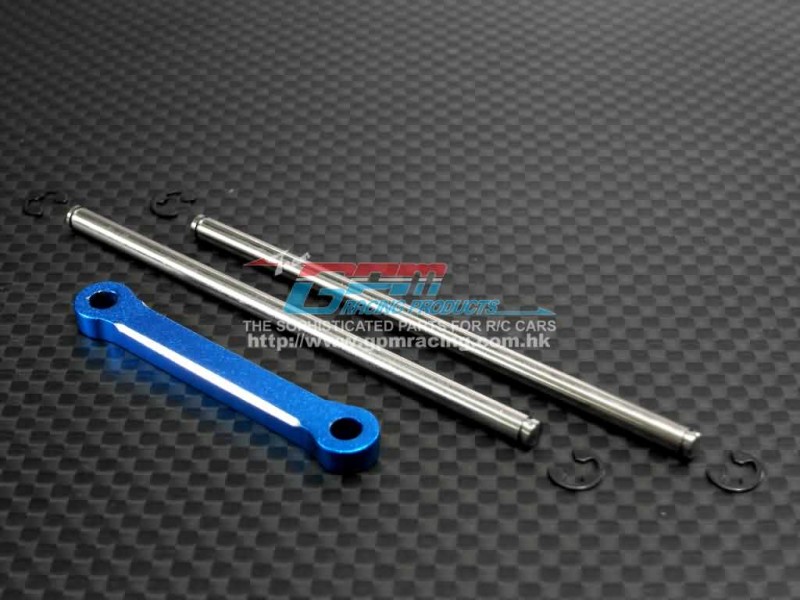 This alloy front arm lock plate from GPM fits the TRAXXAS 1/10 T-Maxx Monster Truck and is intended to improve front suspension rigidity while reducing unwanted movement. The set includes pins and E-clips to ensure the locking plate stays positioned during heavy use, supporting consistent steering behaviour and reliable part retention.