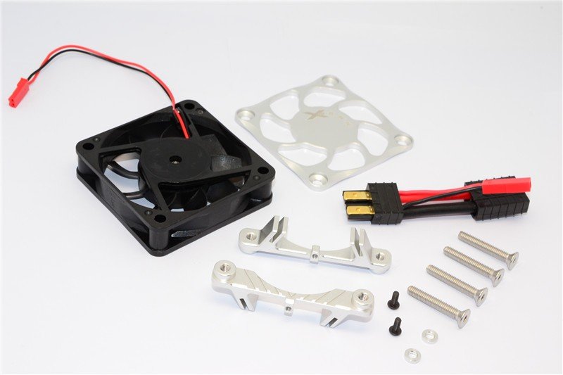 This aluminium heat sink and cooling fan assembly from GPM enhances thermal transfer from the motor on Traxxas 1/8 X-Maxx models, pairing passive heat mass with active airflow to lower sustained operating temperatures. The combination is targeted at hobbyists seeking improved thermal stability and more consistent motor behaviour under prolonged load.