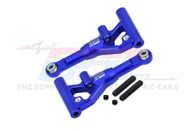 This GPM 7075 Alloy Front Lower Suspension Arms set for the Traxxas 4-TEC Drift Mustang provides a robust front linkage option made from high-strength 7075 aluminium and finished with an anodised coating. The parts increase resistance to flex at the front hub area and help maintain consistent steering geometry under lateral drift loads. Supplied as a complete pair with matching set screws, these arms are intended as a direct replacement for the original plastic components to extend service life in on-road drift use.