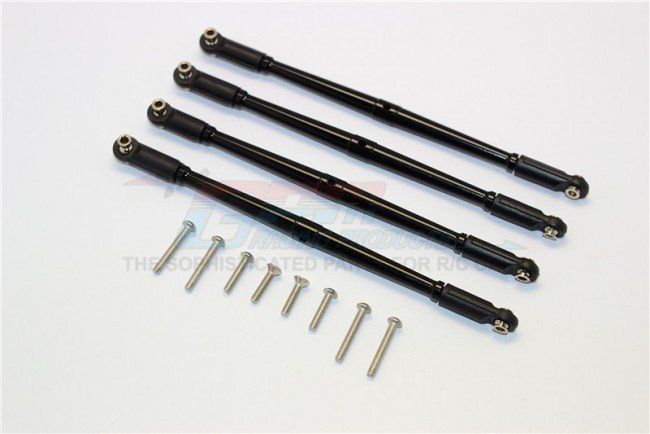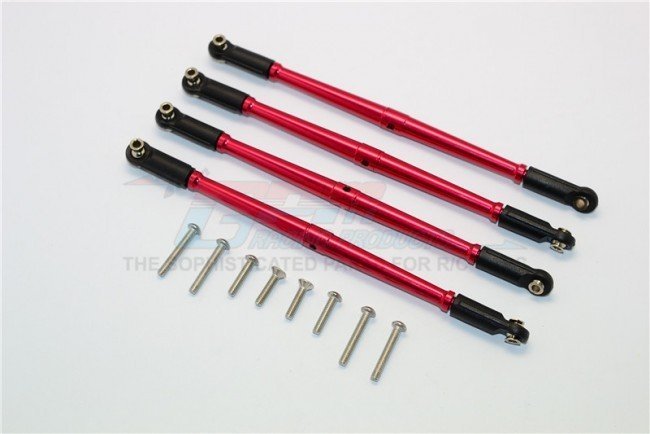 The GPM ER162 aluminium front steering and rear support links provide a CNC style upgrade in strength over stock rods for 1/10 E-Revo based platforms. Intended for E-Revo, Summit, Revo and E-Revo 3.3 models as well as 1/10 electric and nitro cars, these thicker links reduce flex and improve the rigors of aggressive driving. Threaded 4mm tie rod sections allow clockwise and anti-clockwise adjustment for accurate toe and steering geometry setup without altering factory mounting points.