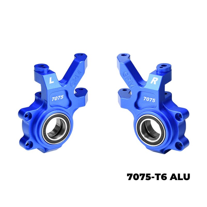 The GPM TPS021 front oversized steering blocks are CNC machined from aviation grade 7075-T6 aluminum to deliver higher stiffness and consistent geometry under load. The steering block integrates a suspension pin holder to reduce tolerance stack and ensure repeatable alignment. By using larger, high precision inner bearings and retaining the original outer bearings, the assembly lowers friction and steering play while remaining straightforward to install and service.