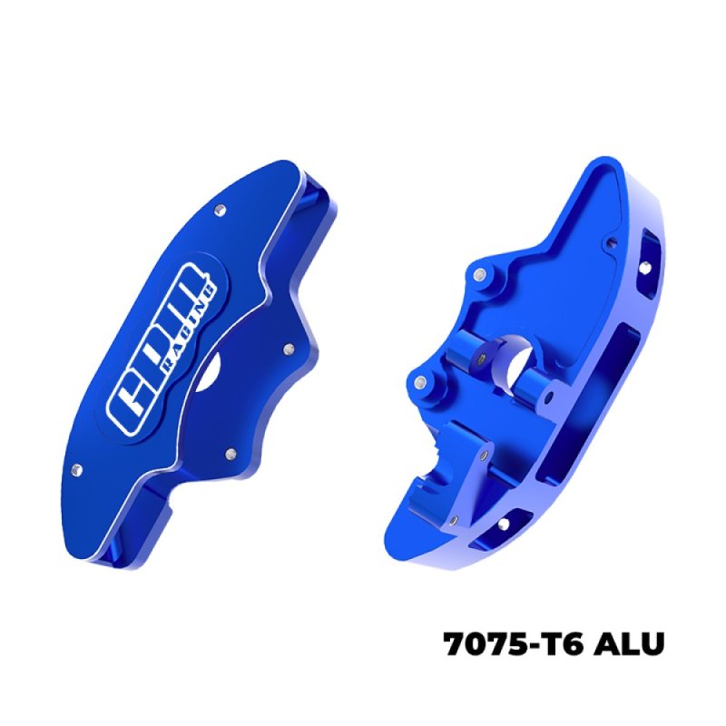 These GPM TPS006 front calipers are CNC machined from 7075-T6 aluminium to provide a high strength to weight ratio and consistent geometry for accurate pad engagement. The multi-piston style is matched with a ventilated, drilled disc to optimise heat dissipation under repeated braking. Anodising enhances surface hardness and corrosion resistance while giving a professional finish to the front wheel assembly.