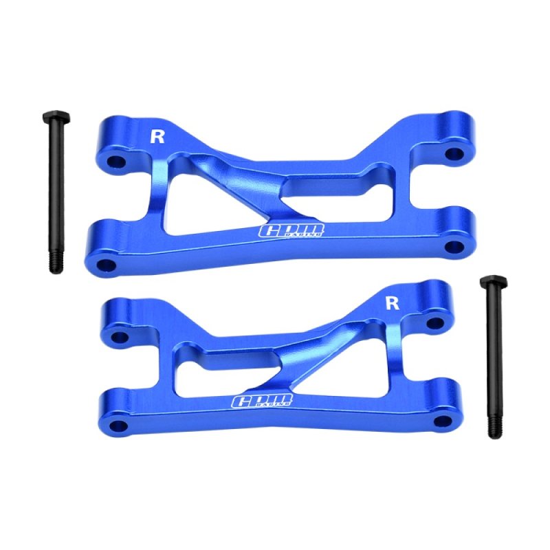 GPM 7075 alloy rear upper suspension arms are intended to reinforce chassis support and stabilise the rear hub stub axle carriers on the Traxxas Mini Maxx. The anodized finish increases resistance to corrosion and contributes to long term durability, offering an engineered replacement for stock components.