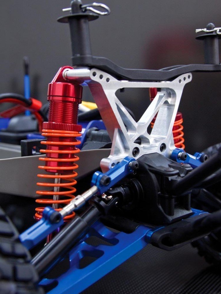 The GPM SLA028 front shock tower is produced as a precision engineered aluminium alloy replacement to strengthen the front shock mounting area on the Traxxas Slash 4X4. It is intended to provide a more robust load path for the front suspension while keeping installation straightforward.