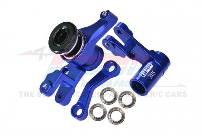 The GPM SLA048N front steering assembly is manufactured from 7075-T6 aluminum to reinforce the Traxxas Slash 4X4 steering system and reduce component flex. This replacement unit is intended to provide more consistent steering feedback and longer service intervals compared with stock items, making it suited to hobbyists who maintain and tune their rigs frequently. Installation fits existing mounting points and uses the supplied bearings for a secure assembly.