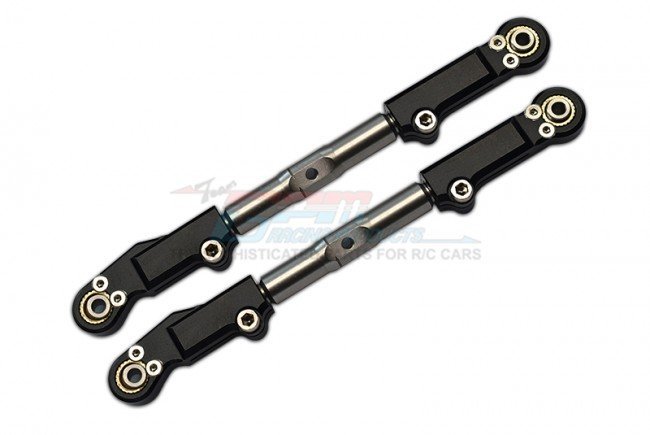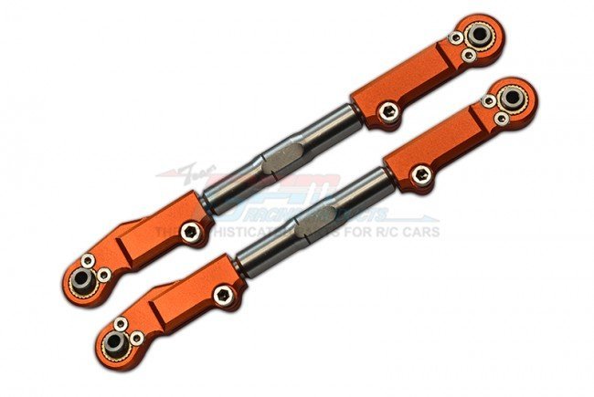 The GPM SLE054S Front Upper Arm Tie Rod is specified for the Traxxas Sledge Monster Truck and is assembled from 6061 T6 aluminium with stainless steel hardware to improve wear resistance and limit corrosion. Its adjustable configuration supports accurate alignment of front chassis geometry and rear wheel angles, making it a practical upgrade for durability and repeatable setup in hobbyist and club use.