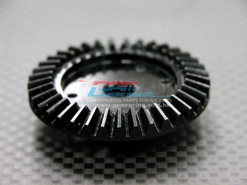This GPM hard steel ring gear is intended as a durable replacement for the Traxxas T-Maxx 1 and Tmaxx 3.3 stock item, helping to reduce wear and preserve consistent tooth contact under load. The component is suited to high-demand running where maintaining reliable gear meshing and low backlash is important for drivetrain performance.