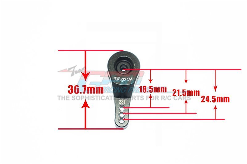 Constructed from 6061 T6 aluminum, the GPM TRX4023TA/3H servo horn is intended as a durable steering upgrade for TRAXXAS TRX4 platforms. The integrated spring provides impact damping to limit peak loads transmitted to the servo, while the straight arm and multiple mounting holes allow incremental tie rod position changes for setup tuning and improved steering consistency.