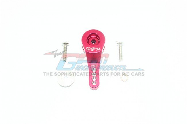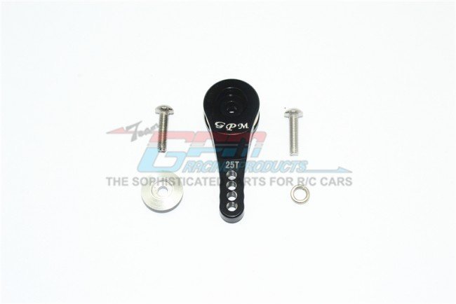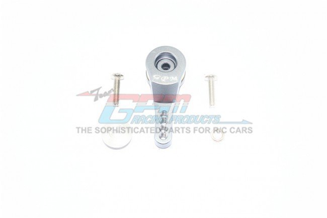 This GPM TRX4025TA/4H aluminium servo horn is engineered for improved steering durability on Traxxas TRX-4 models. The integrated spring provides impact absorption to reduce load on the steering gear, and the multiple mounting holes allow precise tie rod placement to suit different setups and clearances.