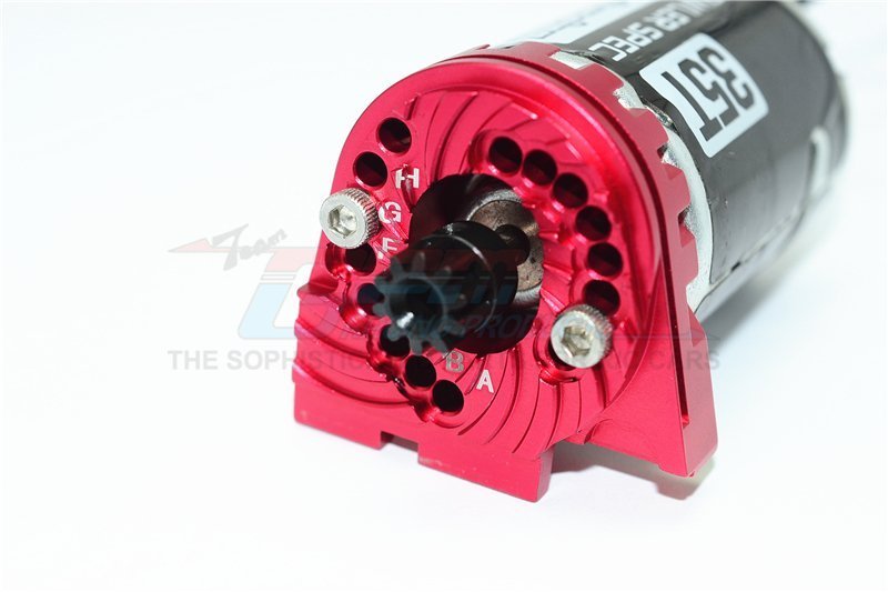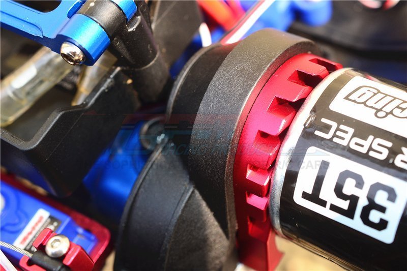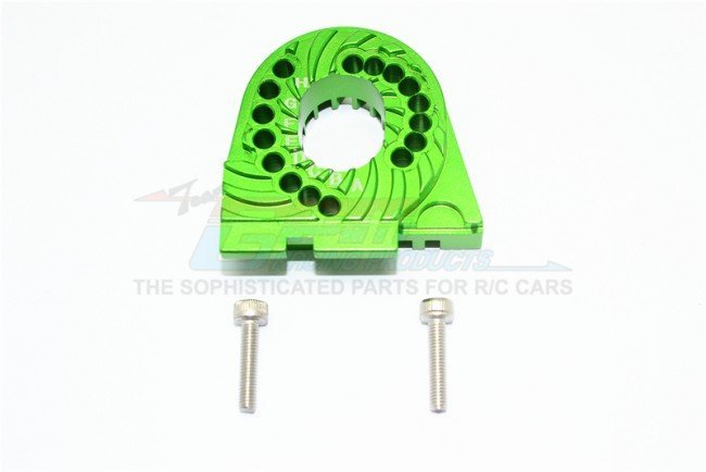 This GPM CNC aluminium double-sided motor mount plate is engineered to increase motor stability and dissipate heat through integrated cooling fins. The 13mm thickness, 8mm greater than the standard part, repositions the motor forward to optimise weight distribution and enhance crawling control under load.