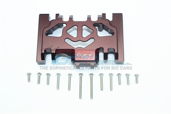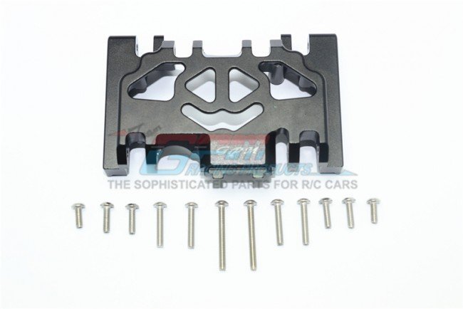 The Traxxas TRX-4 Aluminum Gear Cover by GPM, model TRX4038BA, is specified to protect the centre transmission and adjacent assemblies. Compatible with the Traxxas TRX-4 Defender and Tactical Unit, the cover enhances the chassis stiffness and supports suspension link stability during demanding use.