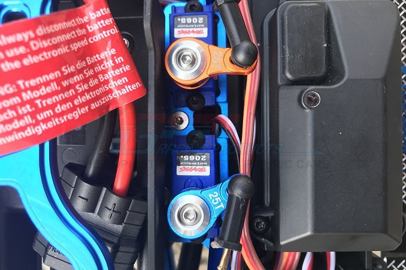 For consistent mechanical engagement, position the 3mm metal washer under the stainless steel round head screw so the screw head fully engages the aluminium collar. This prevents axial clearance and preserves precise linkage alignment under load.