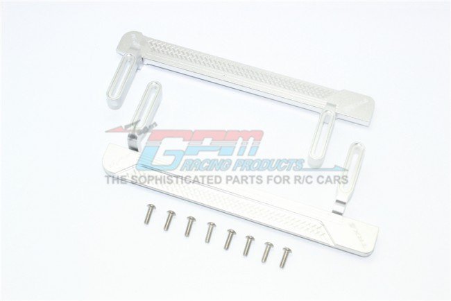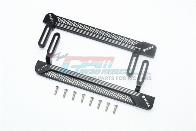 The GPM TRX4014XA side steps are CNC machined from billet aluminium to tight tolerances for repeatable alignment on Traxxas TRX4 platforms. The reticulated machining enhances contact and reduces surface slip while keeping weight low. Slotted screw areas allow calibrated inward or outward placement using the supplied fasteners for precise stance and clearance control.