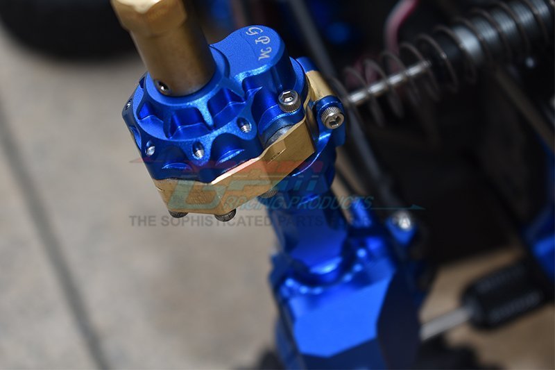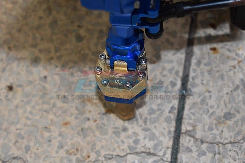 The GPM brass rear knuckle arms are designed to add targeted mass at each rear wheel while supporting the inner gear case on TRAXXAS TRX4 assemblies. The 48 gram addition per wheel enhances low speed traction and helps maintain steady gear engagement under load.