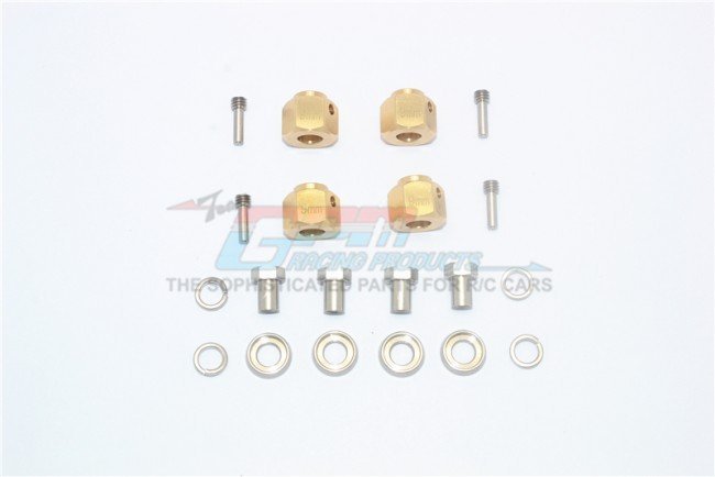 These GPM brass hex adapters are precision machined to tighten wheel fitment on the Traxxas TRX4. The 9mm thickness increases track width and reduces lateral movement, improving stability without altering hub geometry. The parts are intended as durable, serviceable upgrades that maintain consistent tolerances for repeatable fit across installations.