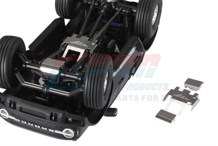 The GPM TRX4MZSP6 metal skid plates are designed to add a reinforced layer of protection beneath a TRAXXAS TRX4M Ford Bronco. These precision-engineered metal plates are intended to reduce wear from rocks and rough sections while integrating with the original chassis layout.