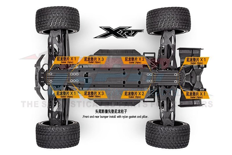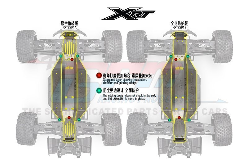 This GPM chassis protection set for the Traxxas XRT 8S is formed from 304 stainless steel to provide corrosion resistance and improved impact tolerance. The plates are intended to strengthen the vehicle underbody, reduce abrasive wear, and extend service life without changing vehicle geometry.