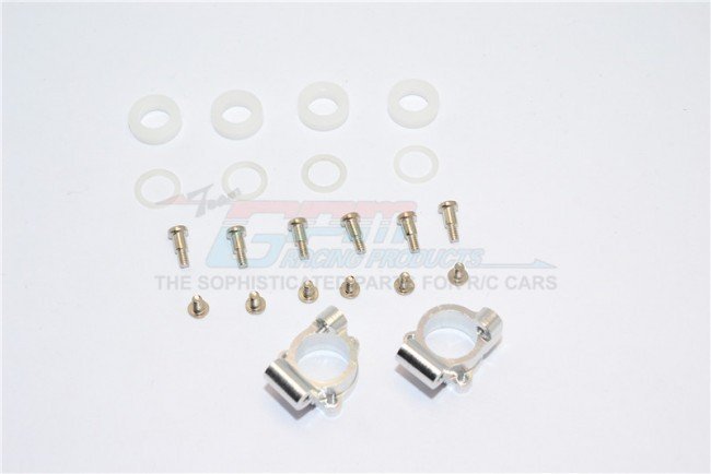 The GPM XME022 rear knuckle arms use precision alloy construction to enhance steering consistency and part life. Delrin collars reduce pivot friction and work with the supplied shims and bushings to provide dependable movement and easier setup refinement.